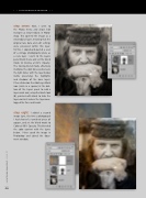 step seven: Next, I went to the Photo menu and chose Edit In>Open as Smart Object in Photo- shop. This opened the image as a smart object layer, meaning that the original raw data and edit settings were preserved within this layer. To this, I copied-and-pasted a scan of a vintage photographic plate as a new layer. I went to the Layers panel blend menu and set the blend mode to Overlay at 62% Opacity. The Overlay blend mode effectively multiplies the dark tones and screens the light tones with the layer below (while preserving the highlights and shadows of the base layer). I then clicked on the Add Layer Mask icon (circle in a square) at the bot- tom of the Layers panel to add a layer mask and, using the Brush tool (B), painted with black to hide the layer contents where the layer over- lapped the face and hands.