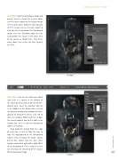 Drag gradients inward from the edge of each side, as well as from the top, to fade the background of the foreground subject, thus revealing the larger subject behind him. Notice how the dust effect remains somewhat and adds a cool effect to the background. This is why there was no selecting and extracting of the subject for this particular image.