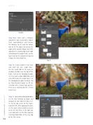 Step Nine: Next add a Vibrance adjustment layer (Layer>New Adjust- ment Layer>Vibrance) and increase the Vibrance to +21 and the Satura- tion to +4. The goal is to increase the color of the autumn foliage, but if the adjustment is creating too much color saturation on the model’s skin, use the layer mask on the adjustment layer to remove the effect from her.
